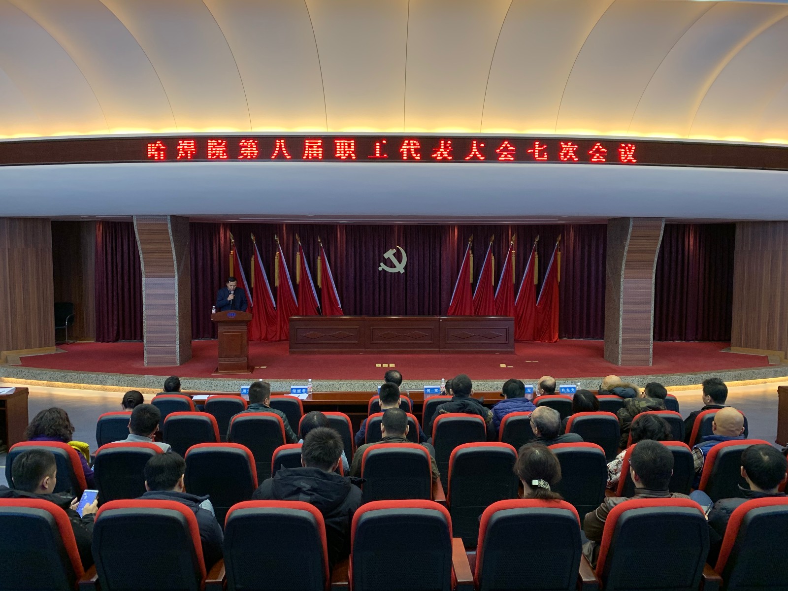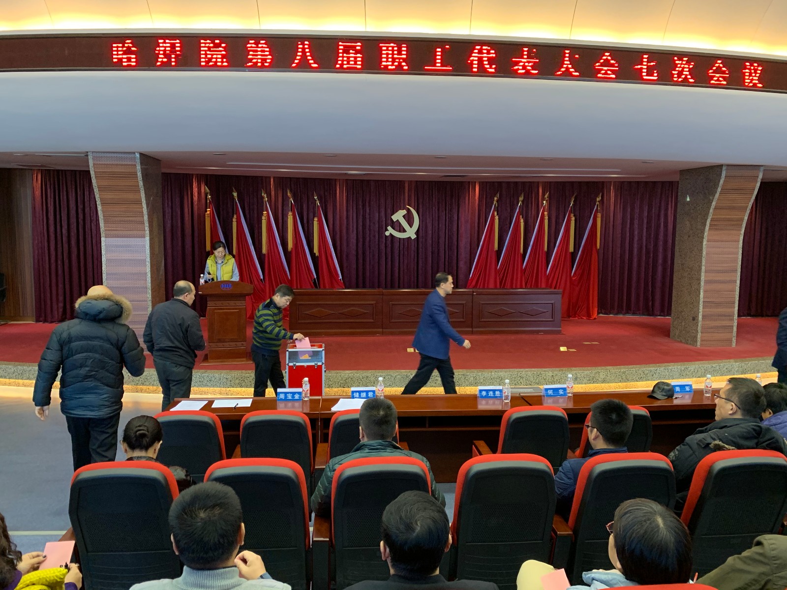2019年12月18日,哈焊院職代會八屆七次會議在學術報告廳召開,選舉出席機械總院集團第二屆職代會職工代表,會議由哈焊院黨委副書記、紀委書記、工會主席儲繼君主持,正式職工代表出席了會議。