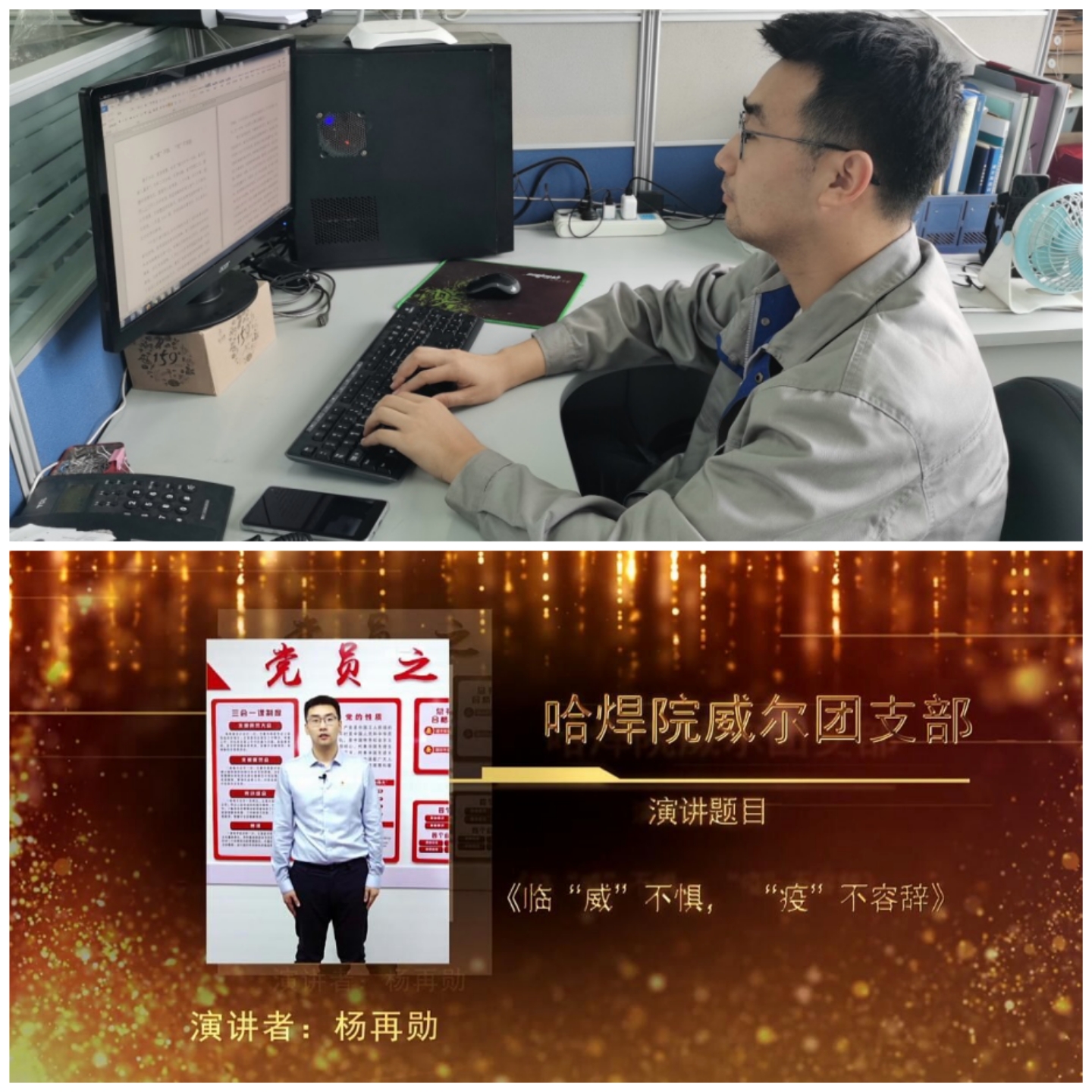 經(jīng)過(guò)哈焊院團(tuán)委前期組織的初賽選拔,楊再勛和張楠脫穎而出,最終踏上機(jī)械總院集團(tuán)演講比賽決賽的舞臺(tái)。本次決賽采取評(píng)委專(zhuān)家評(píng)閱參賽選手演講稿和演講視頻的形式進(jìn)行。為備戰(zhàn)比賽,參賽選手都做了精心的準(zhǔn)備,他們利用業(yè)余時(shí)間選題材、撰稿背稿、彩排練習(xí)。哈焊院團(tuán)委組織多名團(tuán)干部為選手們?cè)\脈把關(guān)、破冰克難,并在錄制參賽作品的視頻以及背景音樂(lè)等方面反復(fù)推敲,大家在每一個(gè)環(huán)節(jié)都力爭(zhēng)完美,讓哈焊院兩名選手滿(mǎn)懷信心踏上征程。參賽作品中,選手們緊扣“不忘跟黨初心 牢記青春使命” 這一主題,結(jié)合青年人投身裝備制造事業(yè)的初心和本單位發(fā)展歷程,從不同角度詮釋了對(duì)黨、祖國(guó)和集團(tuán)的無(wú)限熱愛(ài),對(duì)“不忘跟黨初心 牢記青春使命”主題的深刻理解和獨(dú)特認(rèn)知,體現(xiàn)了哈焊院廣大青年的激情、責(zé)任、追求和擔(dān)當(dāng)。