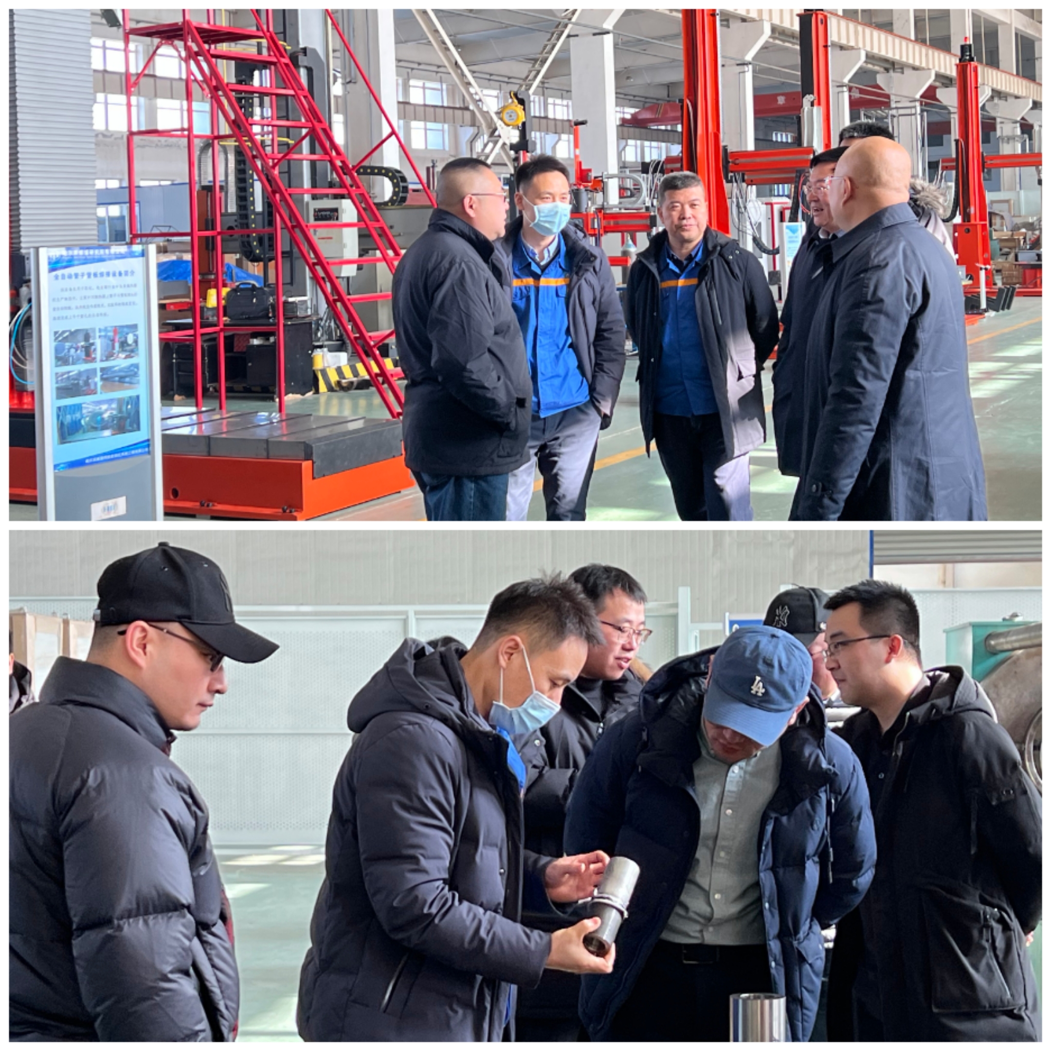 許廣鵬總經理一行首先參觀了研發車間和工藝裝備車間,對哈焊院的技術實力及裝備開發能力有了深入的了解,隨后雙方開展了座談交流。