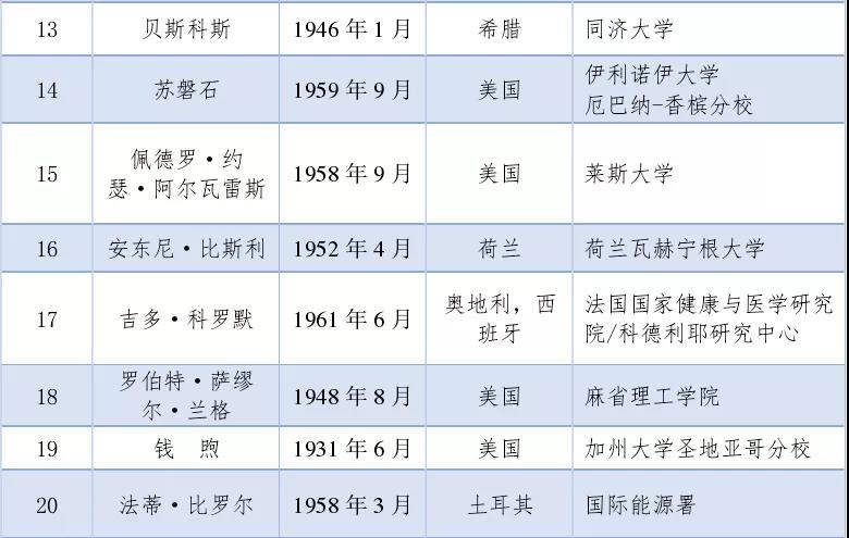 中國工程院2021年當選外籍院士名單(共20人)